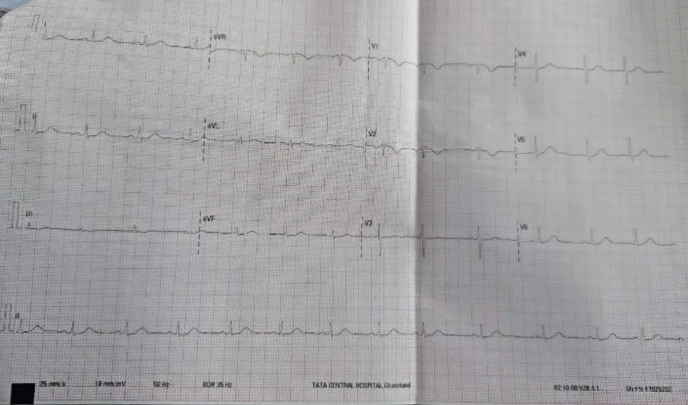 A 28-year-old Primigravida was admitted to our labour room at Tata Central Hospital, West Bokaro, on 9/12/2022 at 12:30 am as a case of 40 weeks with a singleton pregnancy in labour with no other comorbidities. Her medical and past history were otherwise unremarkable. She denied any history of pre-existing heart disease, any allergy, or autoimmune diseases. Her menstrual history was normal, and she was taking her hematinic supplementation regularly.